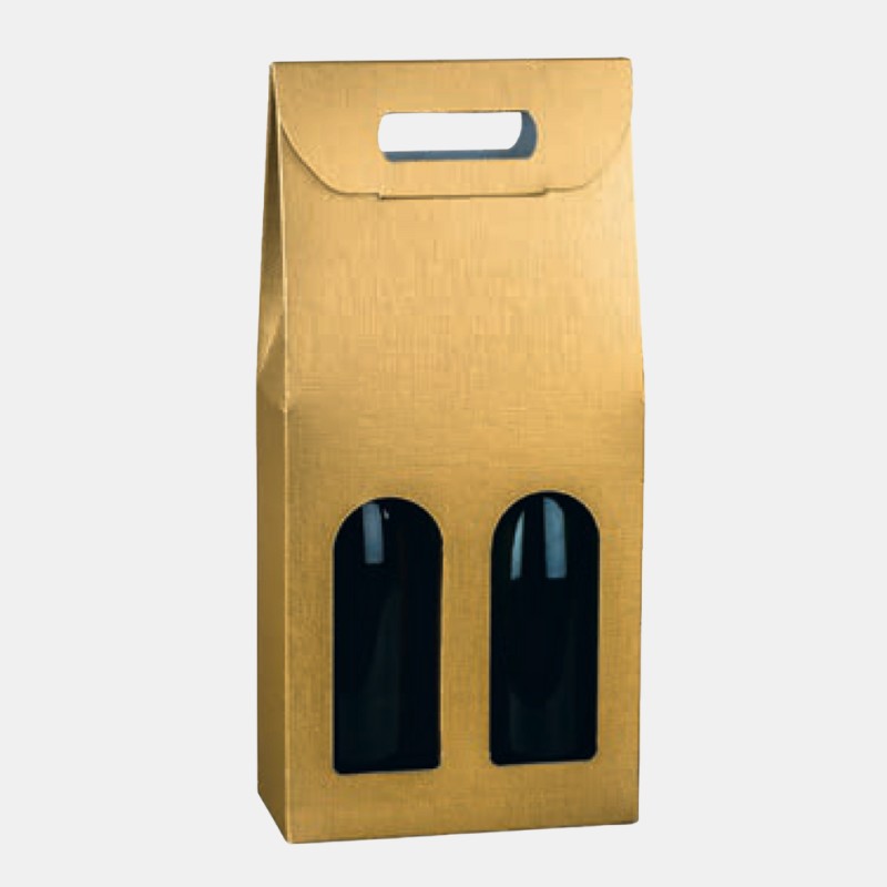 Scatola 2 bottiglie seta nero con finestra e maniglia.