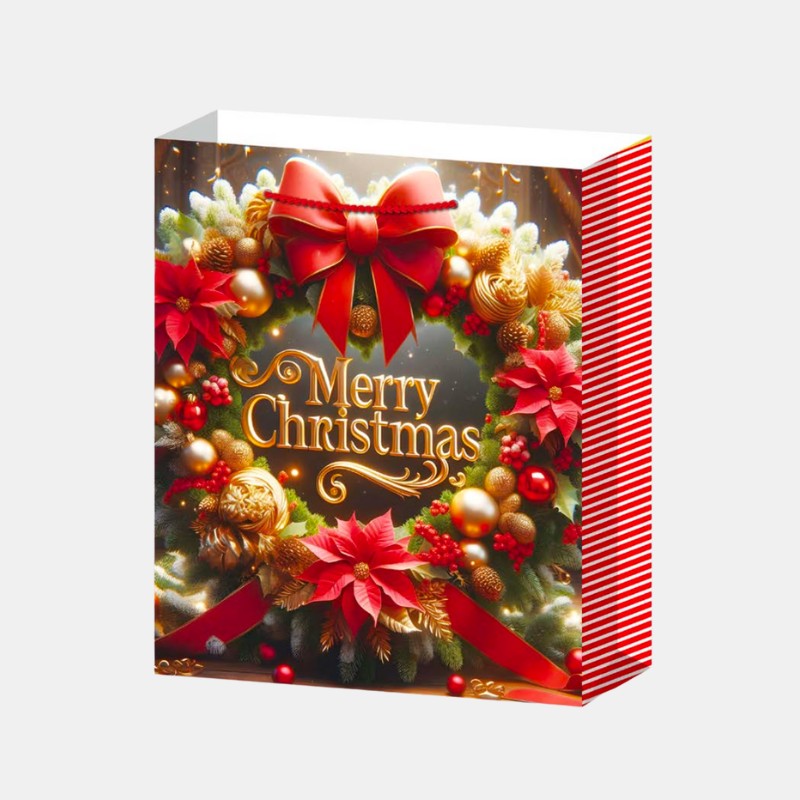 Shopper Natalizio plastificato 210 gr porta panettone con maninici con cordini.